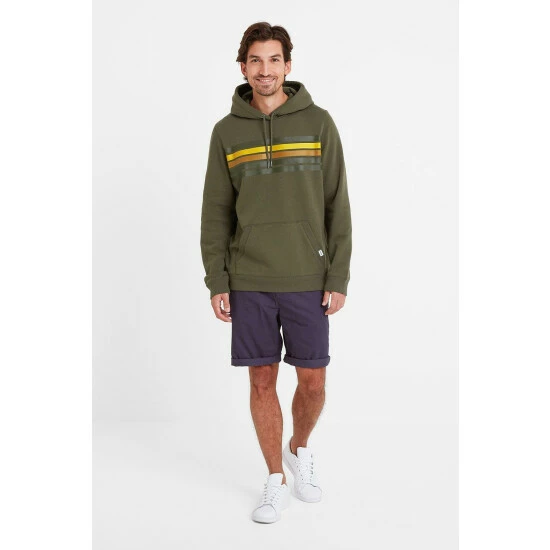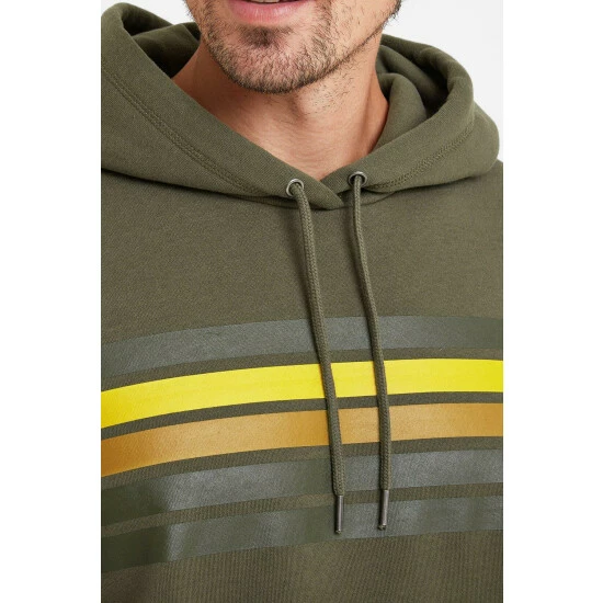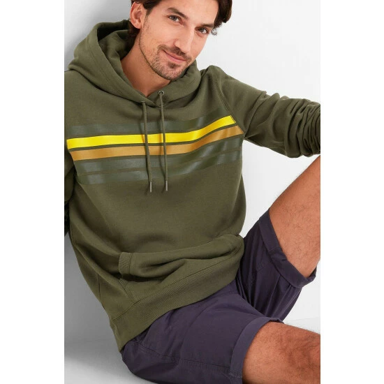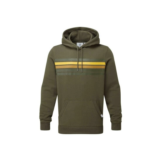 Embleton hoody has tonal stripes printed across the chest in summer colours which contrast boldly against the solid colour of the top. Supersoft with a covetable, brushed peach finish, Embleton comes in a sustainable cotton rich fabric that helps to reduce the environmental impact of clothing production. Knitted hoody drawcords let you adjust the hood, and ribbing on the cuffs, hem and pocket edges give a quality look.