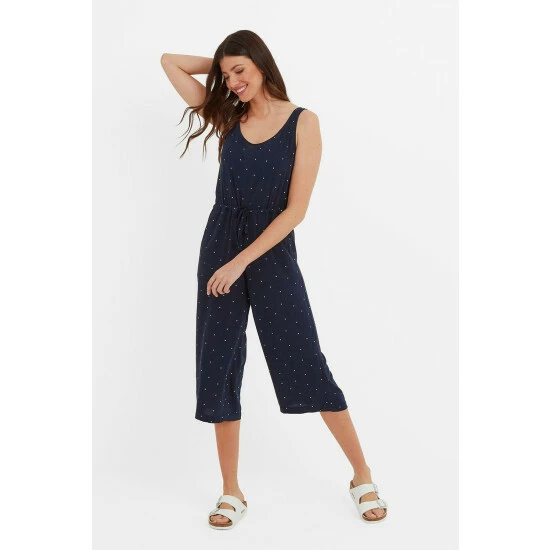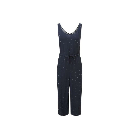 Lightweight, with a deep scrooped v neck our sleeveless Melba Womens Jumpsuit is perfect for a beach barbeque or summer’s day out. Made in a supersoft Viscose that feels cool against the skin, Melba has a drawcord waist which gathers in the fabric to give an attractive, pleated look which is set off by the self-fabric tie. Cropped in length, the legs are wide and floaty and look just as good with strappy heels or casual trainers.