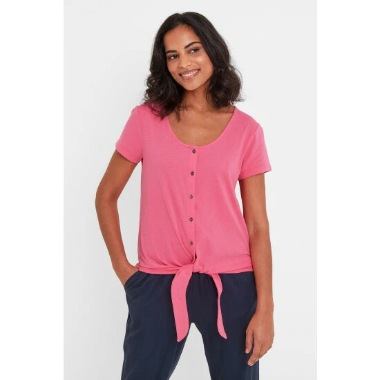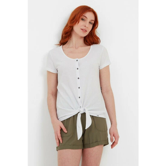 With its longer-line hem tie and feminine neckline, our Millie cotton top is much more than ‘just a tee’. Supersoft and made from a sustainable cotton blend to help keep you cool, it has a deep, softly scooped neckline and small buttons down the front. Millie drapes beautifully over a skirt, shorts or lightweight trousers. It’s finished with the iconic Yorkshire Rose woven label which is discreetly attached to the hem.