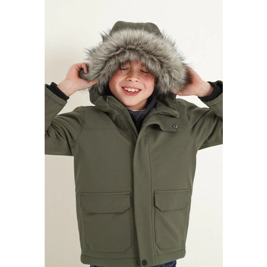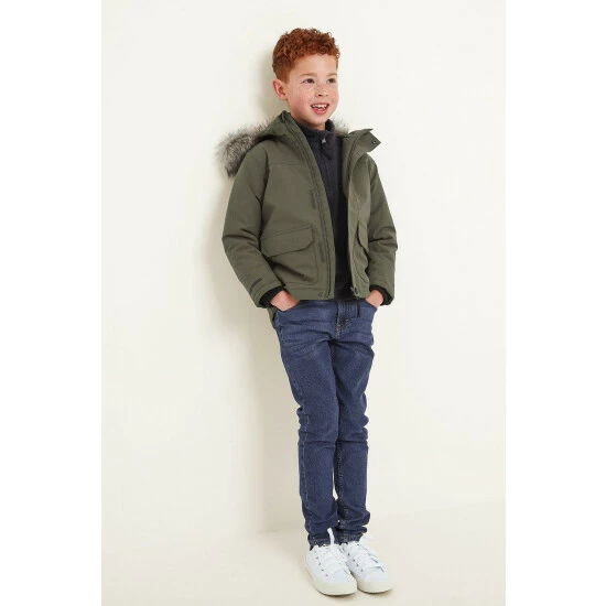 High tech features are combined with classic parka styling in our Peckett winter coat for kids that is waterproof, breathable and rainproof. Made from our signature cotton-feel fabric, this durable coat is finished with fully taped seams and an invisible water repellent coating for total protection from the elements. It’s super warm too thanks to a high-performance thermal filling made from recycled plastic bottles and has a soft quilted lining inside that makes it cosy to slip into.